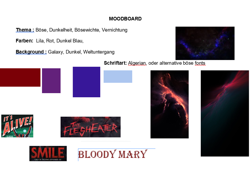 Unser Plakat ist noch in Arbeit, es soll dieselbe bedrohliche Aura ausstrahlen wie die Bloody Mari an sich. Leider hat auch hier die Zeit nicht ausgereicht.