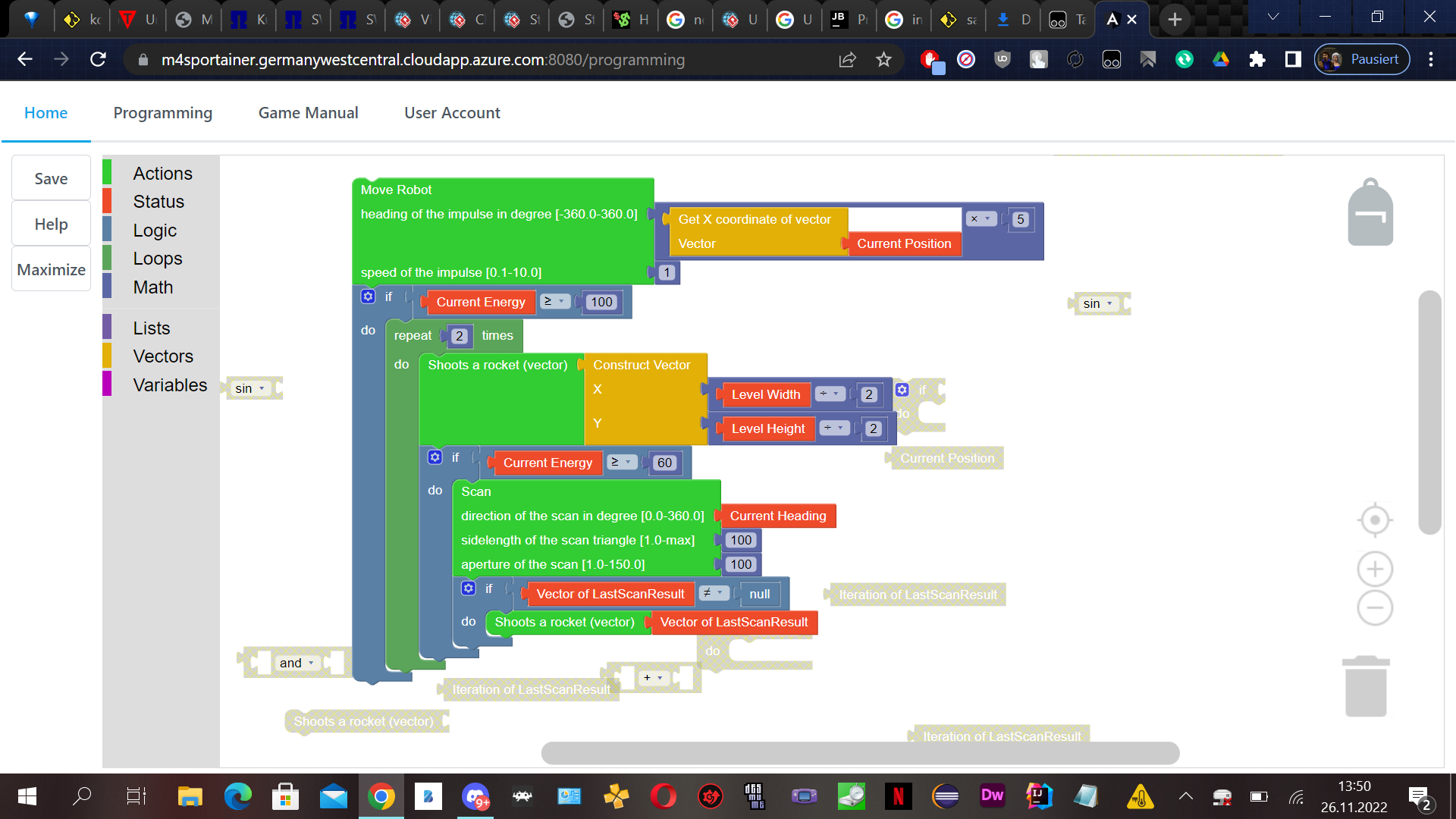Zeit ist knapp in Sprint 2, zu Beginn des Sprints kann unser Schiff nur in die obere rechte Ecke schießen. Dies muss nun geändert werden, immerhin soll er in die Mitte schießen. Auch soll er in Kurven fliegen, welches er momentan noch nicht tut.